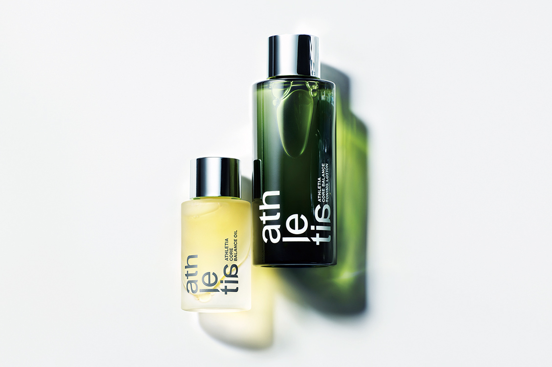 アスレティアのスキンケア、その中心にあるのがコアバランス オイルとコアバランス コンディショニングローションです。この2品を組み合わせることで肌を保護し、肌が美しくなろうとする“基礎力”をサポートします。